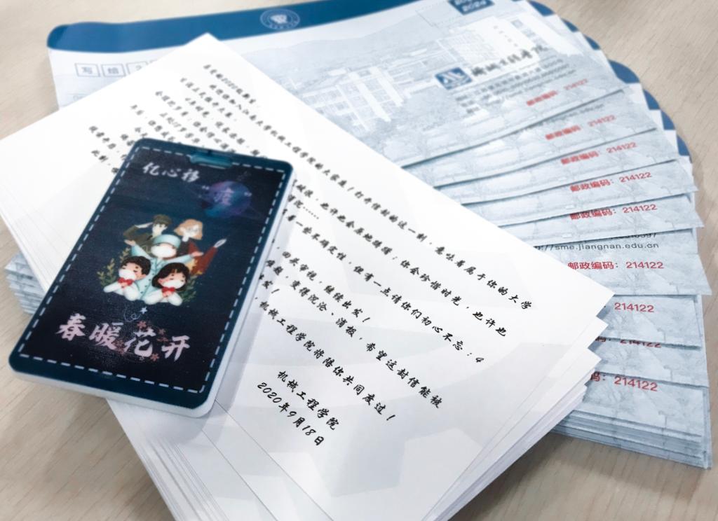 迎来了2020级本科新生。为增加新生入学仪式感,学院给每位新生准备了特殊礼物。结合疫情和学校防控需要,学院特别定制防疫提示卡套,期待“亿心移疫 春暖花开”,时刻提醒学生做好个人防护措施;暖心温情、设计精美的“写给2024的一封信”,提醒新生不忘初心、砥砺前行。
