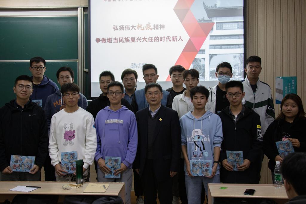 期间,田备不时与学生互动。关荣同学通过他当防疫志愿者时的亲身经历告诉同学中国制度的优越性,为作为一名中国公民而自豪;李聪同学讲述了他看到一台台生产口罩的机械设备和麻省理工研发的低成本呼吸机为抗击疫情所做的贡献,感受到机械专业对社会的重要性;彭笑峰同学通过分享自身的学习情况、讲述受疫情冲击的企业自救事例、国家经济复苏的有关政策,认为“中国政策”必将走向胜利。随后,田备指出夺取抗疫全面胜利并不简单,这需要我们持续努力,抓好学校疫情防控常态化工作,学习弘扬践行抗疫精神。真正做到未雨绸缪,全方位自我赋能。课堂尾声,同学们提出一些关于学习、就业和发展方向的问题,田备都耐心解答,字字珠玑引发学生强烈共鸣与深刻思考。最后,田备对学生提出了殷切期盼,希望他们能够传承抗疫精神,把握青春、尊重青春、成长为社会栋梁之才。