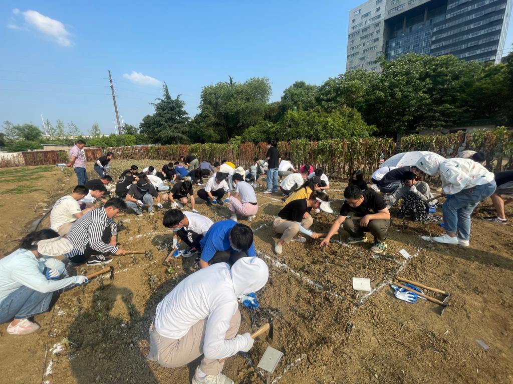 活动开始前,蒋凌羽向学生们介绍了小鼋花园的种植区域划分以及劳动实践教育意义。吴湘娟详细讲解艾草种植的注意事项,亲自示范如何铲土与种苗。讲解结束后,同学们自行组队拿起工具进行艾草苗种植。虽然天气炎热,但丝毫不影响同学们的干活热情与认真态度。他们根据老师的讲解,按照间距要求和苗坑深度,认真地将一棵棵艾草苗整齐种植好。参与此次活动的同学看到自己的劳动成果后都非常开心,有同学表示是第一次参加此类活动,感觉自己得到了与课程学习和科研实践不一样的收获与快乐。