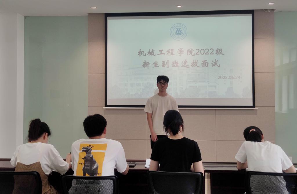 副班主任队伍建设,充分发挥班级团体的指导作用,加强对新生年级的管理,在新生中营造优良学风和班风,6月24日下午,学院在机械楼B308会议室开展“青春接力 一起向未来”2022级副班选拔。经个人申请、学院审核,共有22名学生参与此次选拔面试,辅导员潘智琦、高鑫、萧欣彤、宋京姝担任评委。