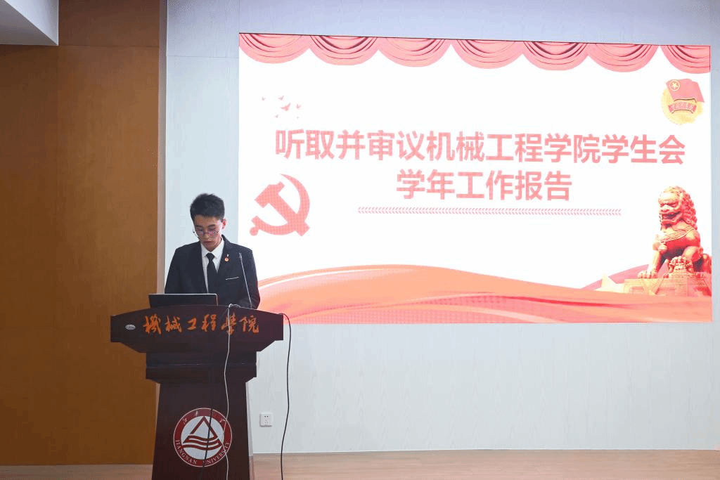 接着,学生会执行主席慕登斌代表第八届学生会向大会作了题为《开拓进取谋发展,锐意进取谱新篇,在党和国家的指引下提升学生服务工作水平,团结带领广大同学更好肩负起新时代的责任和使命》的工作汇报。研究生会执行主席梁怡良代表第七届研究生会向大会作了题为《把握时代思想,谱新篇,共成长》的工作报告的工作汇报。他们分别回顾总结了过去一年院学生会、研究生会的工作,并提出未来一年学院学生会、研究生会的工作方向和目标。