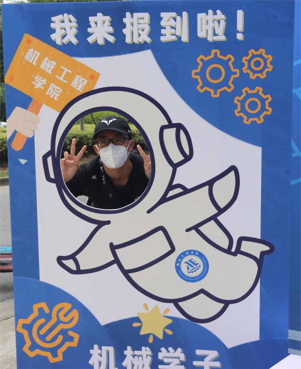 于宿舍园区迎新服务点布置疫情防控标语“勤通风、不堂食,戴口罩、少流动,疫情防控不放松,最美江大等你赏”,提醒出入校园的新生自觉遵守疫情防控规范,共盼美好校园。“意义手卡与专人摄影”为新生定格入学第一天和报到瞬间,给新生留下初入校园的第一张形象照以及同好友、班级同学在机械学院的第一份纪念。为营造浓厚迎新氛围,学院大厅布置整齐,并设置新生礼物领取点、激光雕刻展示区、签名拍照区,并细致整理今年的升学、就业、竞赛情况和优秀典型事例,制作展板进行陈列。不仅周到细致迎接新生,更希望营造氛围引导学生认识专业,以优秀学长学姐为榜样,在机械学院度过充实无悔的四年。