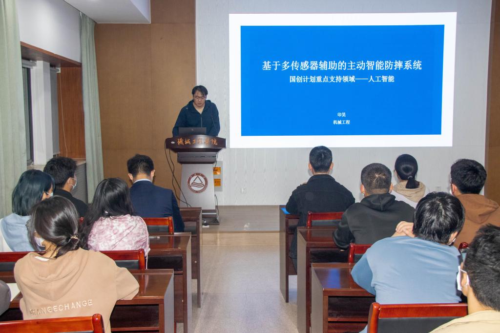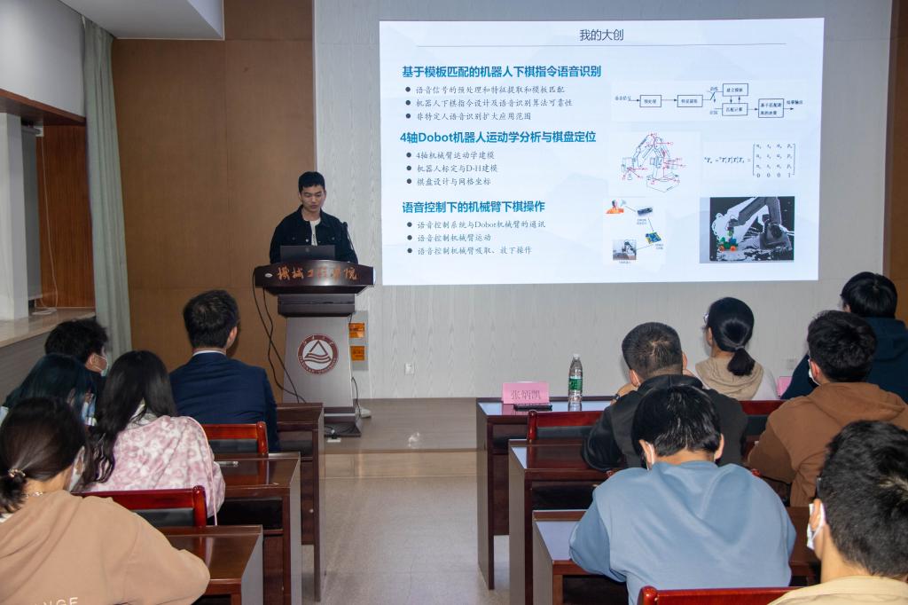 在机械楼C302会议室举办大学生创新创业训练计划宣讲会。此次宣讲会由机械1902班印昊同学、机电1901班张炳凯同学主讲,辅导员宋京姝及部分2021级、2022级本科生参与。
