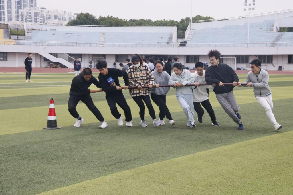 下午的趣味运动会更注重团队的协作能力。体育场上,运动员们喊着铿锵有力的口号,迈着整齐如一的步伐,怀揣着坚定不移的信念,在旋风跑、同心鼓、花毽围踢等项目中迎难而上,不畏强敌。整场比赛热火朝天,妙趣横生。