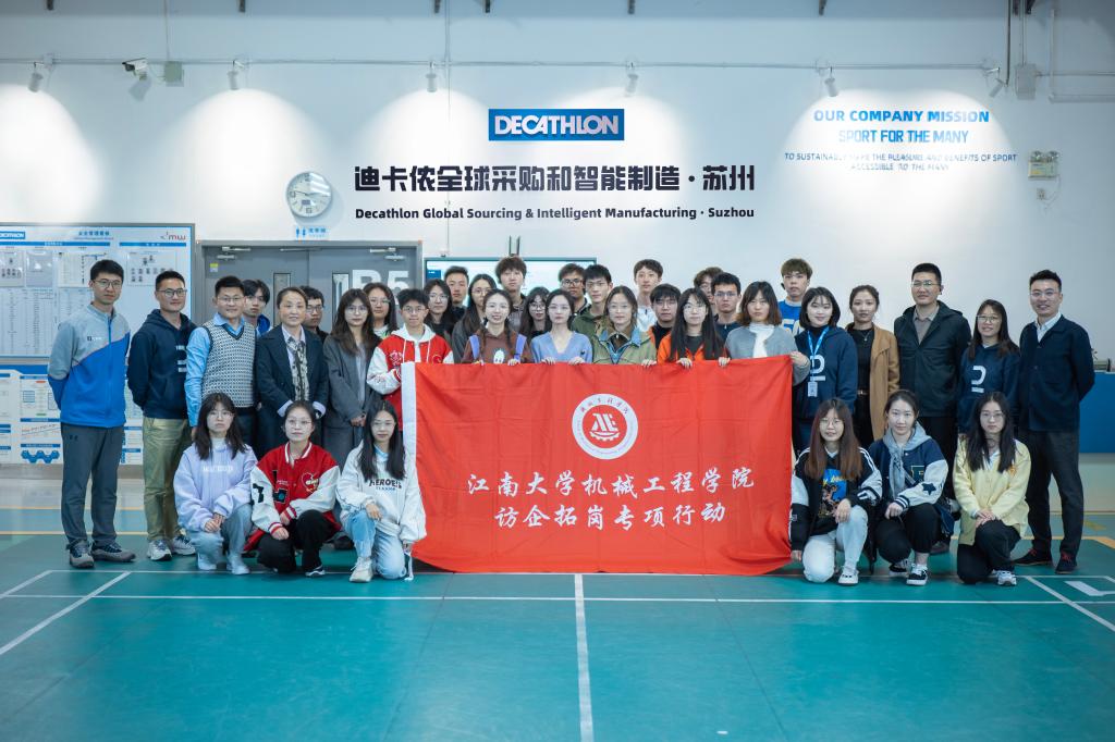 党委书记高雪梅携分团委书记孟召双、辅导员冯亚东、萧欣彤等前往苏州迪卡侬公司开展访企拓岗专项行动。学院各专业学生代表30余名一同前往参观交流。