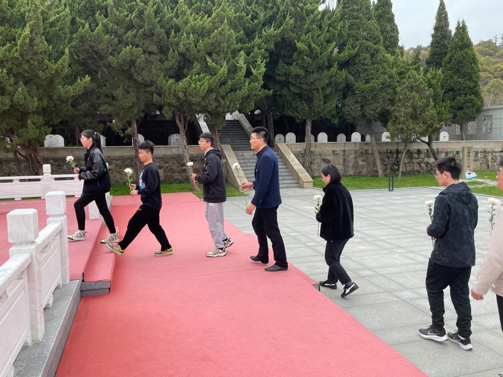 学院师生代表来到陵园广场,在陈宗昱的主持下举行了庄重肃穆的悼念仪式。师生们怀着崇高的敬意向烈士敬献花圈,在纪念碑前默哀,表达对先烈的敬意与深切哀悼。冯亚东致悼词,他勉励机械学子牢记革命历史,不忘先烈遗志,传承红色基因,厚植家国情怀。陈宗昱带领全体党员庄重宣誓,向革命烈士纪念碑三鞠躬,绕墓地一周,献上鲜花以表哀思。