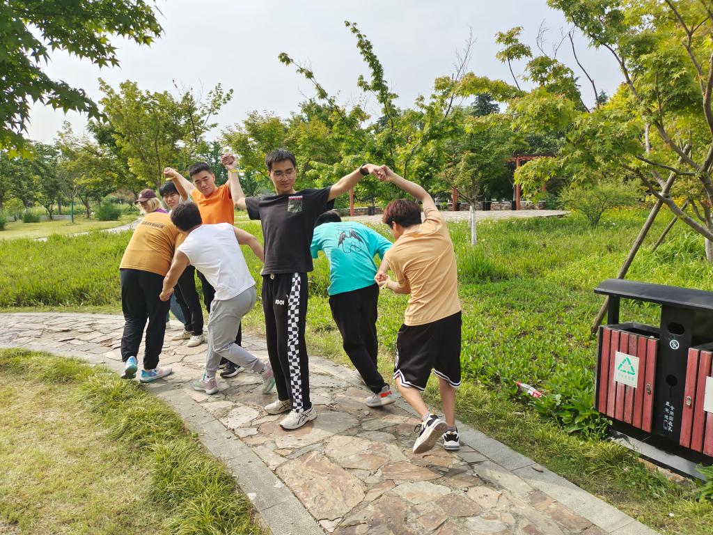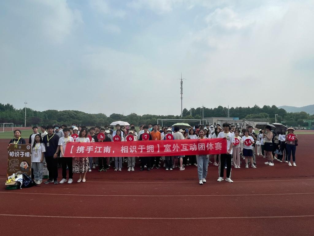 “携手江南,相识于拥”室外互动团体赛是通过陌生人随机组队形式,团队携手完成校园打卡、与陌生人拥抱破冰、定点任务等系列活动。在裁判仔细宣读完比赛规则并答疑完毕后,孟召双宣布开赛。130余人组成的14支队伍在校园各点内进行拍照打卡和游戏,活动过程中队员们也不忘活动的主题——拥抱。同学们在校园内寻找着陌生人进行亲切友好的互动,将热情与爱传递在校园之内、在陌生人的心中。