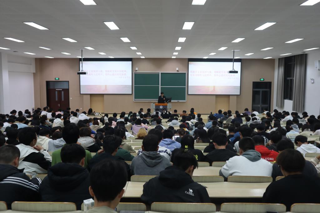 在2A127举办新生转型教育系列讲座。辅导员张倩瑶、宋京姝、机械2001班吕昂烨及2023级全体本科生参加活动。