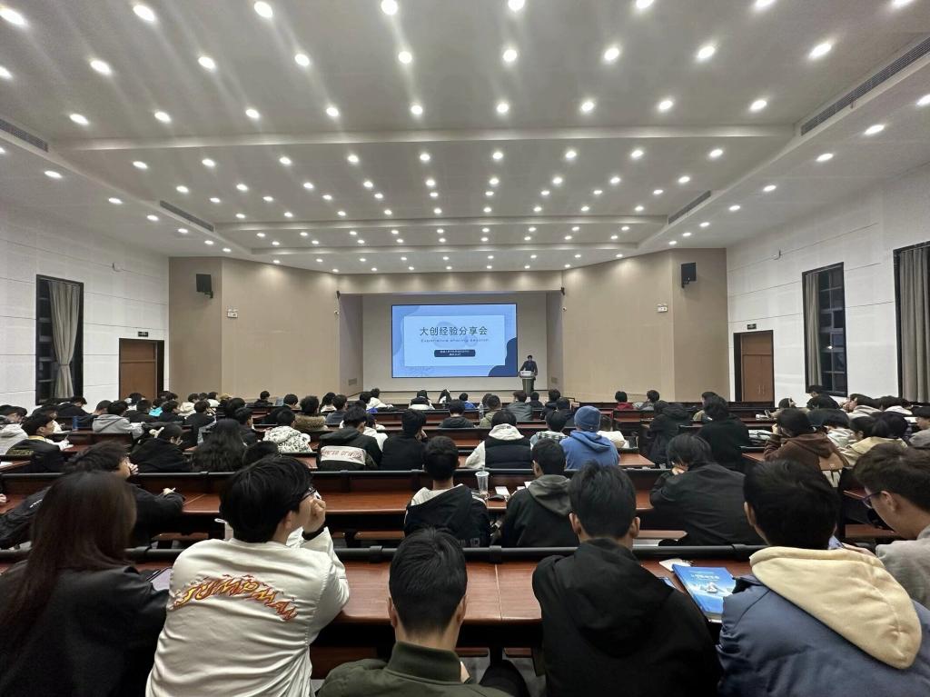 于11月27日晚在1C109举行了大学生创新创业训练经验分享会。此次分享会由机电2001班姚亚周同学和机械2104班陈道明同学主讲,辅导员张倩瑶及100余名2022级本科生参与了此次分享会。