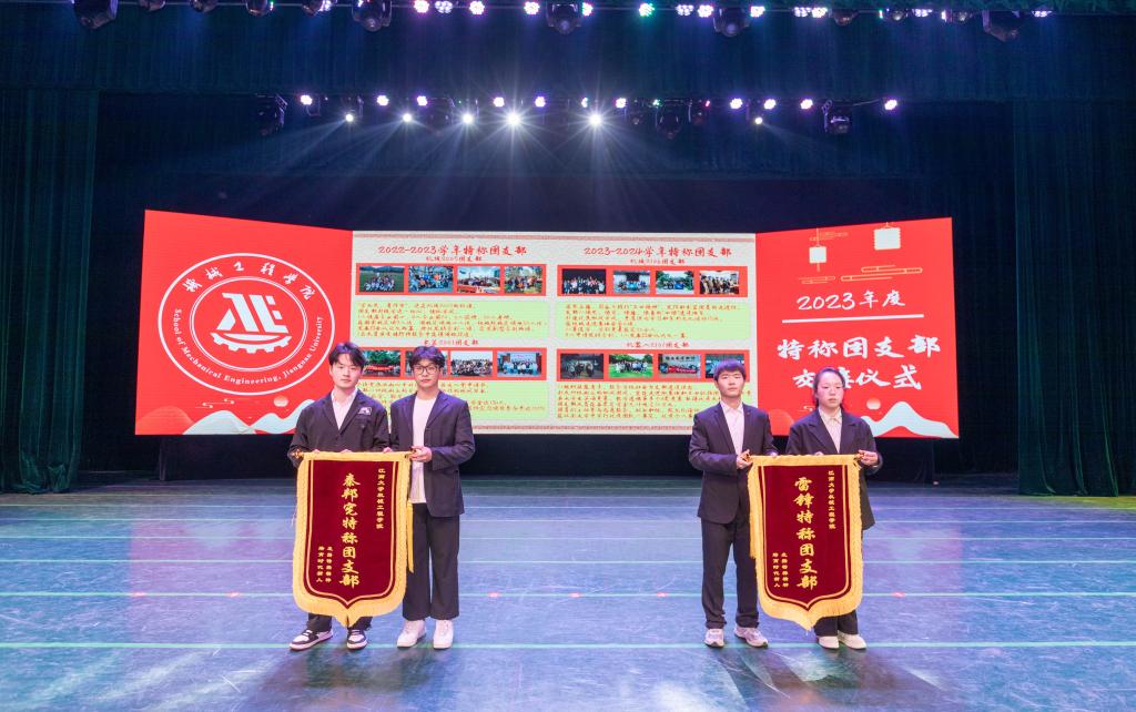 2022-2023学年院长特别奖获奖学生名单,赵军华为获奖学生颁发证书,并合影留念。院长特别奖作为学院最高荣誉奖项,旨在表彰在学习、科研、志愿活动、学院贡献等方面有突出表现的学生。赵军华勉励同学们要以优秀学子为榜样,脚踏实地,提前规划,朝着目标不懈奋斗。特称团支部交接仪式上,“秦邦宪特称团支部”和“雷锋特称团支部”锦旗的传递,代表着“特称精神”在新老团支部之间的传承,也激励新生团支部不断夯实支部建设,薪火传承、生生不息。