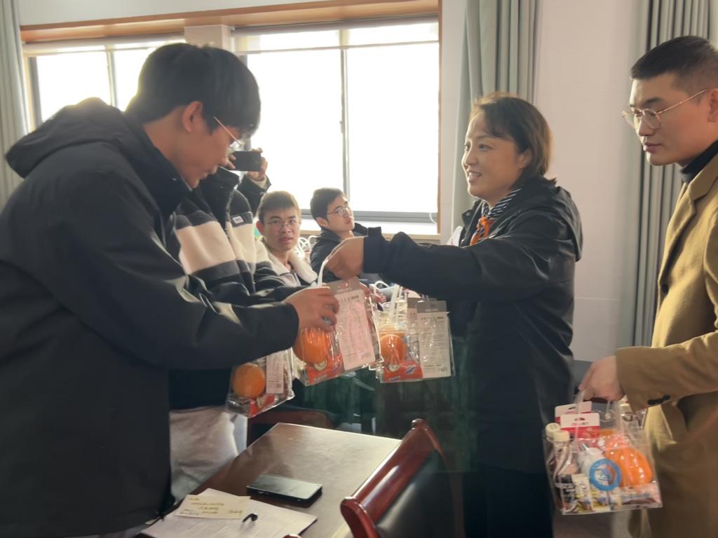 党委书记高雪梅、党委副书记兼副院长刘升恒、学工办主任兼分团委书记孟召双、辅导员何涛、辅导员刘子琪及部分考研学子出席此次活动。慰问会由学工办副主任、2024届辅导员潘智琦主持。
