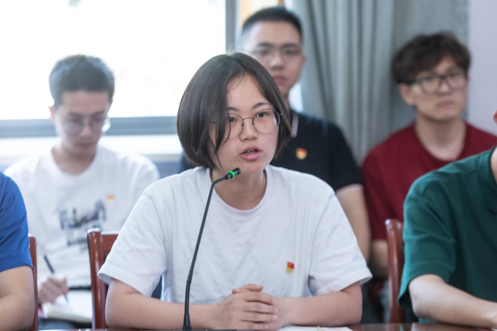 支部党员周雯结合本次主题党日活动学习内容、自身本硕科研经历及读博深造原因作重点交流发言,她表示,国家目前正处于智能机械转型阶段,国际科技竞争激烈,高校研究生更应加强基础研究,从源头和底层助力解决关键技术问题。党员王鹏飞、揭大东、王炜就自身专业学习、基础实验开展及未来学习规划相继发言。