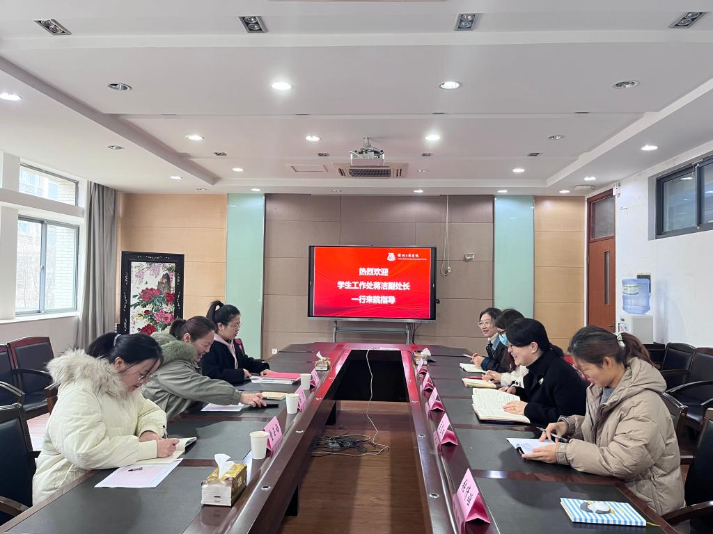 12月12日上午,学生工作处副处长蒋洁、心理健康教育中心主任张慧,心理健康中心童玉梅一行来到机械学院调研指导心理工作。院党委副书记兼副院长刘升恒,学工办主任兼分团委书记孟召双,学工办副主任潘智琦,辅导员张倩瑶、萧欣彤、刘子琪参加调研交流。