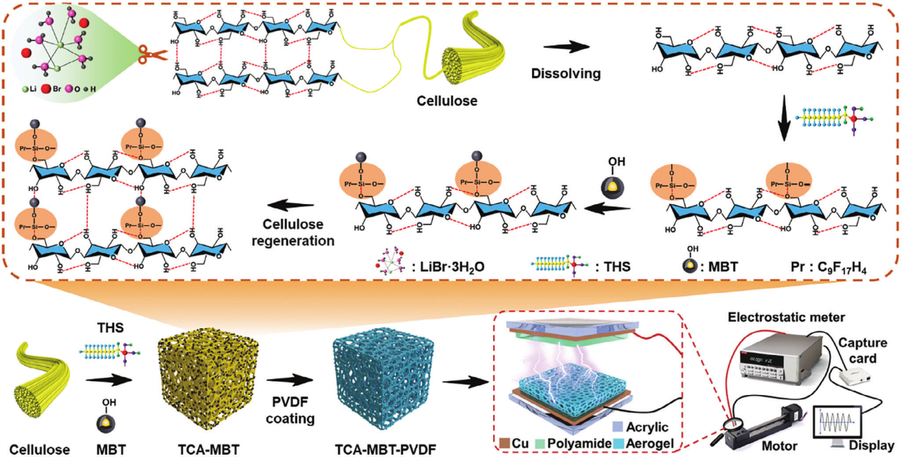 王利强教授研究团队在Small期刊发表题为“Improved Electrical Output Performance of Cellulose-based Triboelectric Nanogenerators Enabled by Negative Triboelectric Materials” (DOI: 10.1002/smll.202308195)的研究论文。阐述了一种高性能纤维素基摩擦电材料的制备方法。充分利用了纤维素气凝胶中复杂的网状结构对电荷产生和转移能力、铁电材料和介电材料对电荷强亲和力的协同效应,实现开路电压和短路电流分别高达1040 V和1.16 mA的显著值,性能优于目前所有基于纤维素的负摩擦电材料。论文第一作者为91在线