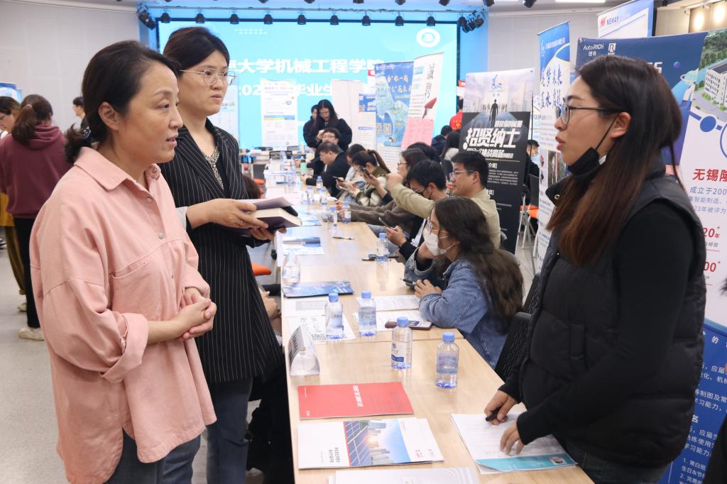 举办2024届毕业生春季专场招聘会。本次招聘会共有无锡精派机械有限公司、法兰泰克重工股份有限公司、无锡瑞吉德机械有限公司、无锡市益明光电有限公司、罗斯(无锡)设备有限公司、中建四局第六建设有限公司、无锡航亚科技股份有限公司、迈安德集团有限公司等64家优质企事业单位参加,涵盖机械工程、机械电子工程、包装工程、过程装备与控制工程、土木工程等专业领域,共为毕业生提供就业岗位2000余个,在锡企业超过50%。学院求职学生踊跃参加,参会学生300余人。