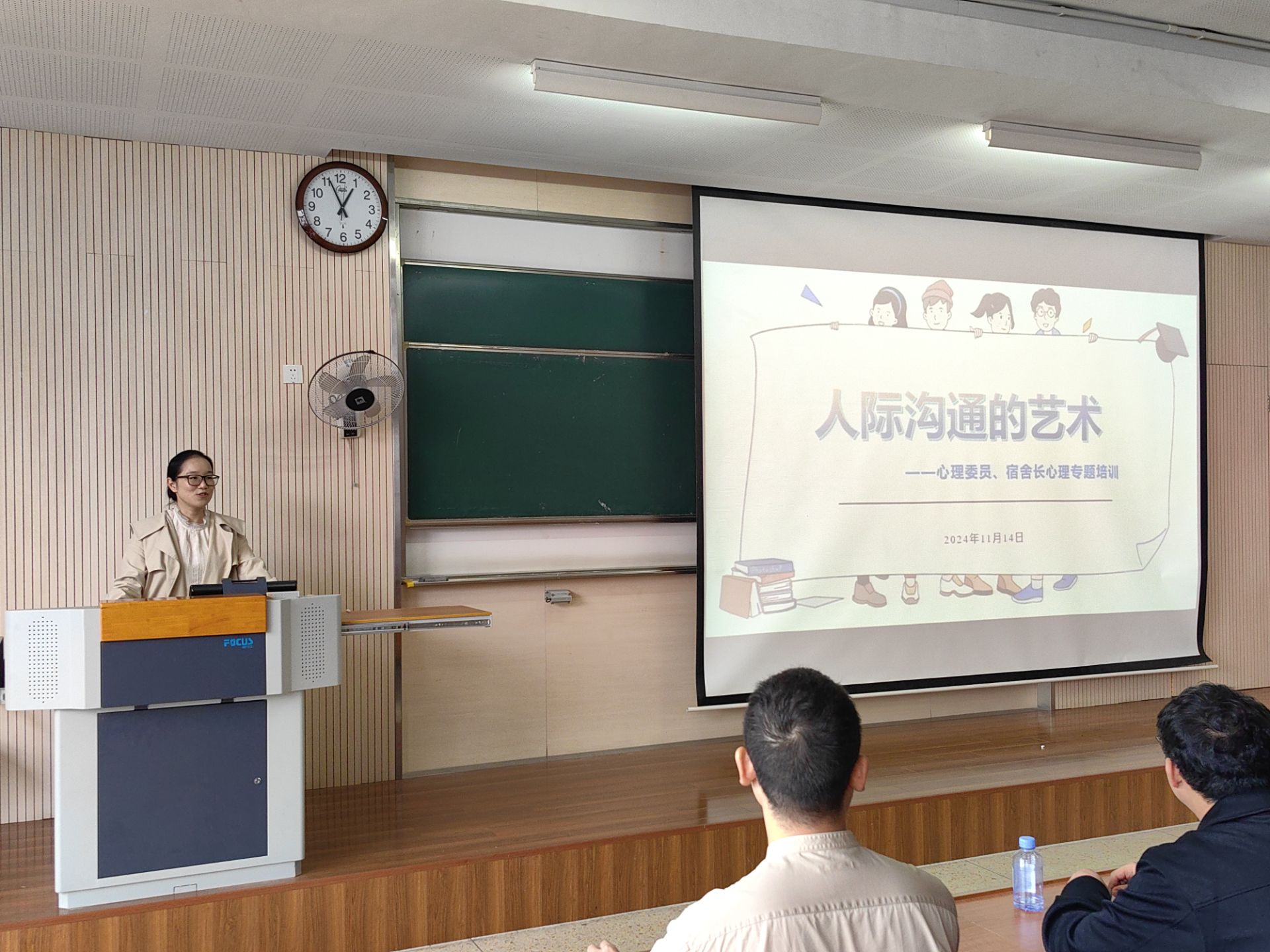 李诗炜以“人际沟通的艺术”为题进行专题培训,她指出,宿舍是大学生社交的最小单元体,是学生心理健康方面最容易发现问题、解决问题的空间。她结合具体案例讲授科学的沟通方法及应对技巧,从哪些同学需要关心、怎么关心帮助同学以及如何进行自我关怀等方面,重点剖析了需要帮助的征兆以及实施帮助的具体办法。