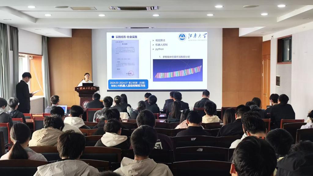 举办第二届大学生职业规划大赛决赛,中建科工集团有限公司区域招聘经理张永福,学而思江苏区域校园招聘经理赵小乐,学校就业指导中心孙博文老师,学院辅导员何涛、刘子琪担任评委。经过前期报名、初赛评审,成长赛道、就业赛道共12位同学脱颖而出进入决赛。
