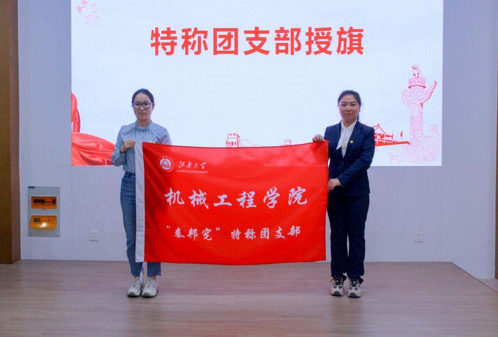 授旗环节,李诗炜、何涛、宋京姝为3个特称团支部授旗。鲜红的旗帜承载着传承与创新的使命,接过旗帜的团支部代表郑重承诺:“以旗帜为引领,赓续‘特称’精神,书写奋斗新篇!”