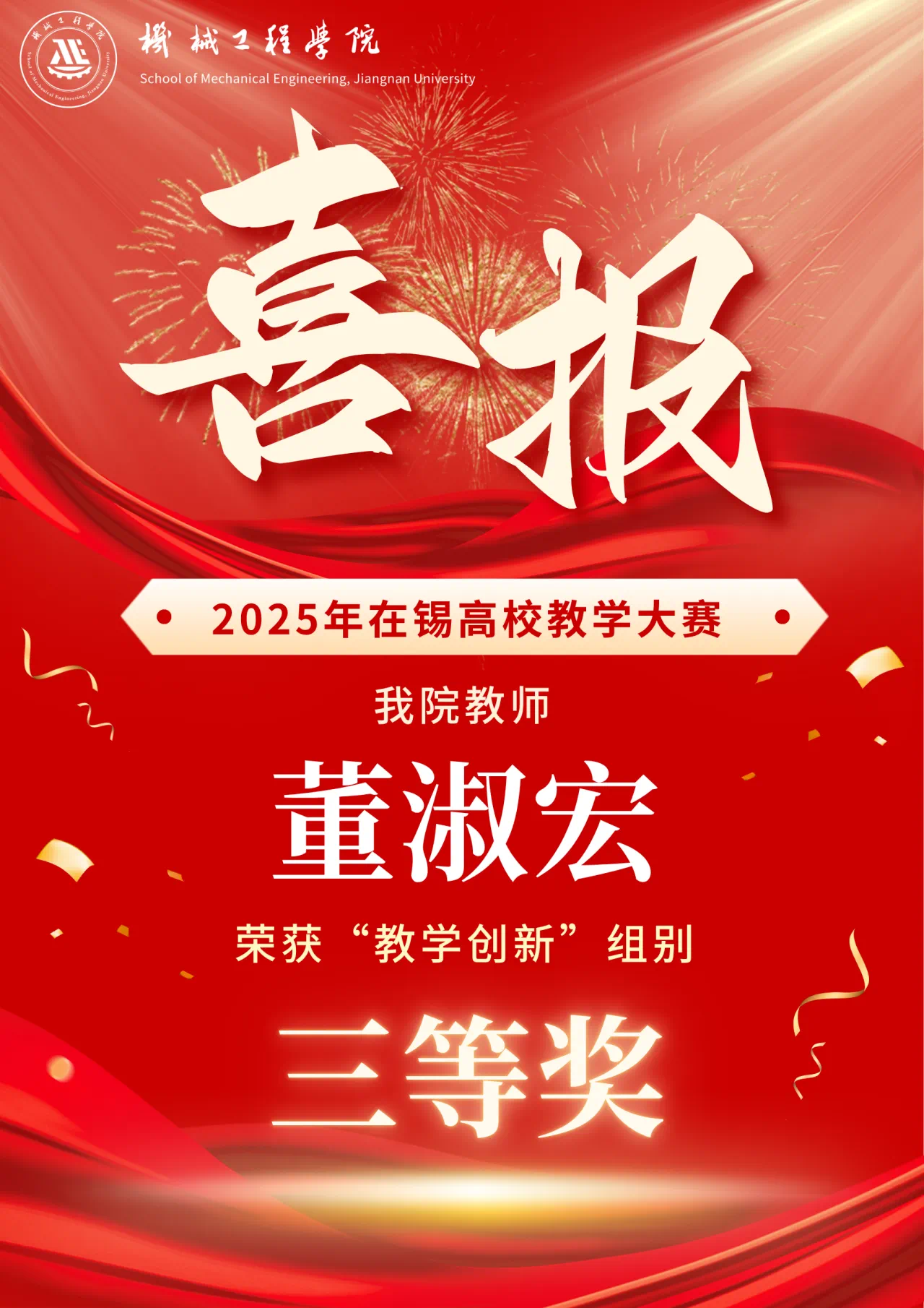 近日,由无锡市教育局高等教育处主办的“2025年在锡高校教学大赛”评选结果揭晓。经过激烈角逐,91在线