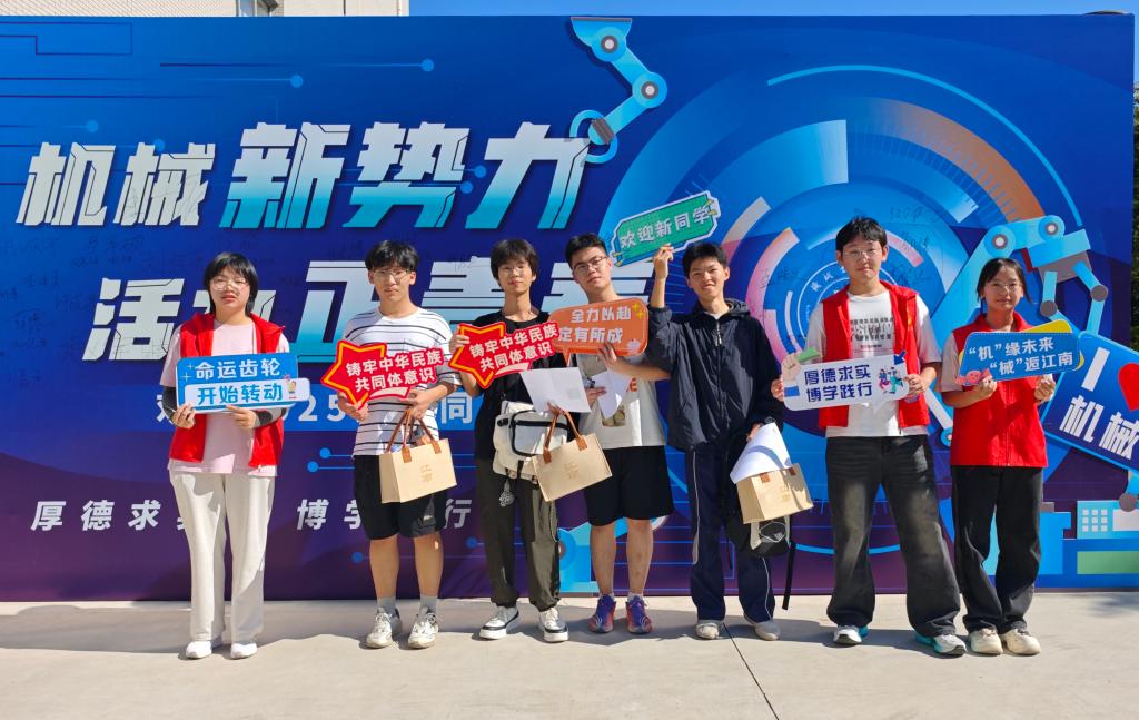 迎新当天,学院大厅外设置的机械主题喷绘展板成为新生及家长的合影打卡点,许多新生在此拍摄了进入大学后的第一张照片,留下珍贵的入学记忆。学院还为每位新生准备了定制版机械元素文创卡套,实用且富有学院特色。