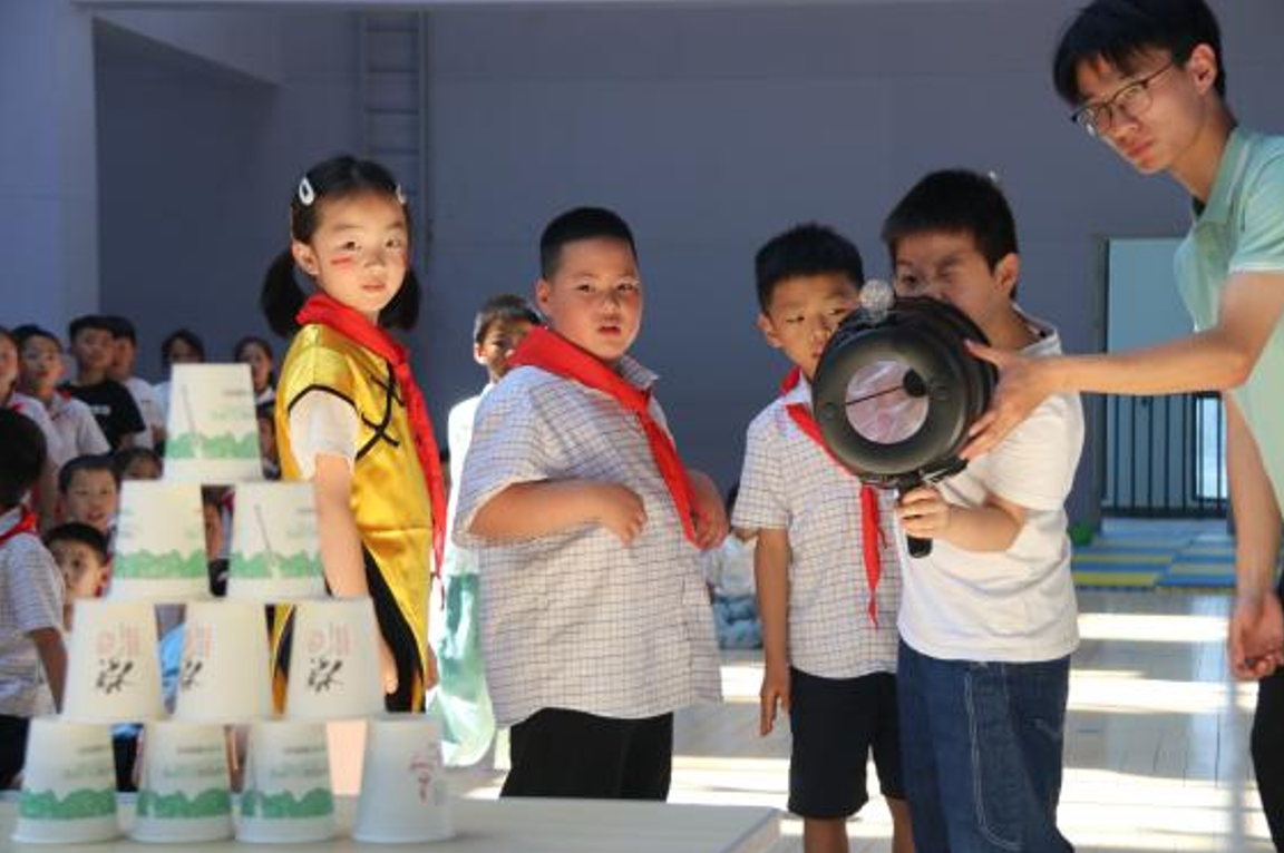 宣讲团打造“星火传承,科学启航”品牌活动,走进无锡市尚贤万科小学等地,开展科学家精神与科普课堂深度融合的志愿服务。宣讲团结合专业特色开展单机小马达、空气炮、太阳能小车等科普实验讲述了“栉风沐雨廿十年,两弹一星耀苍穹”的艰难历程和无锡籍“两弹一星”元勋姚桐斌的不朽故事,在孩子们心中播撒热爱科学、崇尚科学的种子。