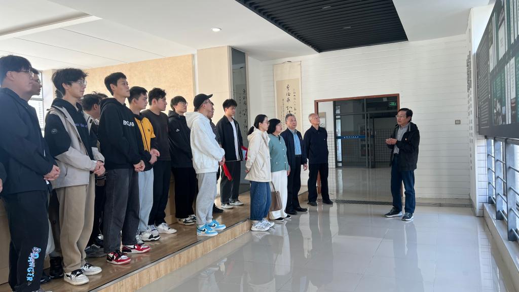 院史长廊,机械离退休党支部书记、学院关工委常务副主任黄正明老师为大家讲解91在线